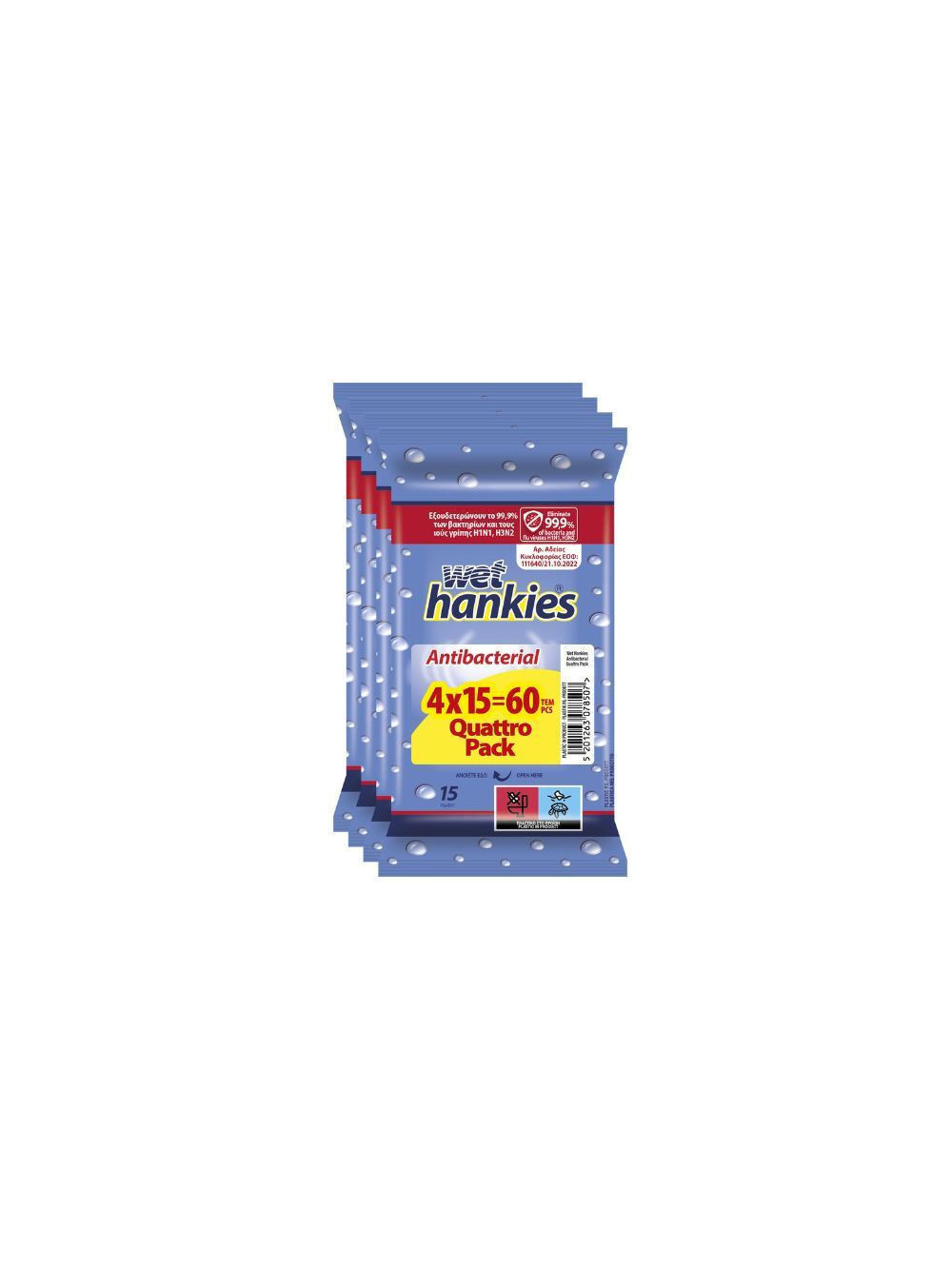 ΦαρμακείοCovid-19 ΜΕΓΑ Wet Hankies Antibacterial Αντισηπτικά Μαντηλάκια Χεριών 4x15τμχ