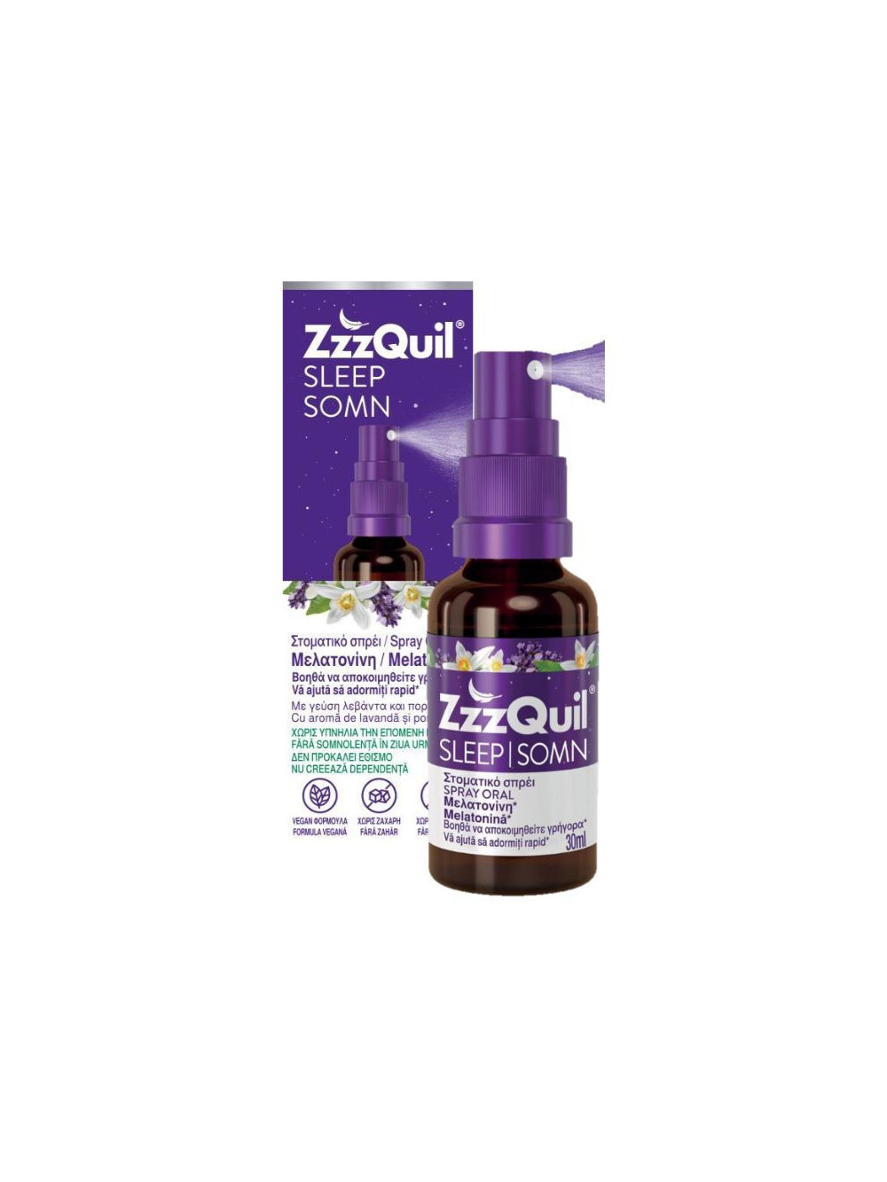 Εύχρηστη μορφή για να αποκοιμηθείτε γρήγορα. 4 Sprays = 1mg μελατονίνης.