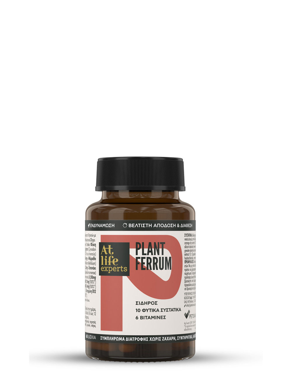 Το ΑtLife experts Plant Ferrum περιέχει ένα συνδυασμό ενεργών συστατικών για τόνωση με Γλυκονικό σίδηρο για μεγαλύτερη βιοδιαθεσιμότητα & καλύτερη απορρόφηση , 10 Εκχυλίσματα ωφέλιμων φυτών πλούσια σε σίδηρο, βιταμίνες, μέταλλα, ιχνοστοιχεία γνωστά για τις αντιοξειδωτικές, τονωτικές και αποτοξινωτικές του ιδιότητες και 6 Βιταμίνες που συμβάλλουν στην απορρόφηση και το μεταβολισμό του σιδήρου.