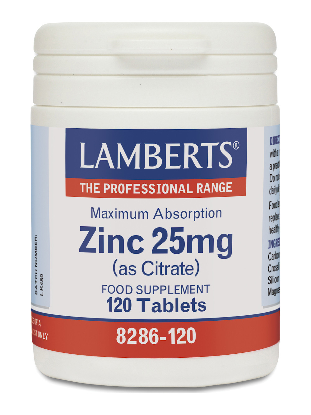 Συμπληρώματα ΔιατροφήςΜέταλλα - ΙχνοστοιχείαLamberts Zinc (as Citrate) 25mg 120 ταμπλέτες