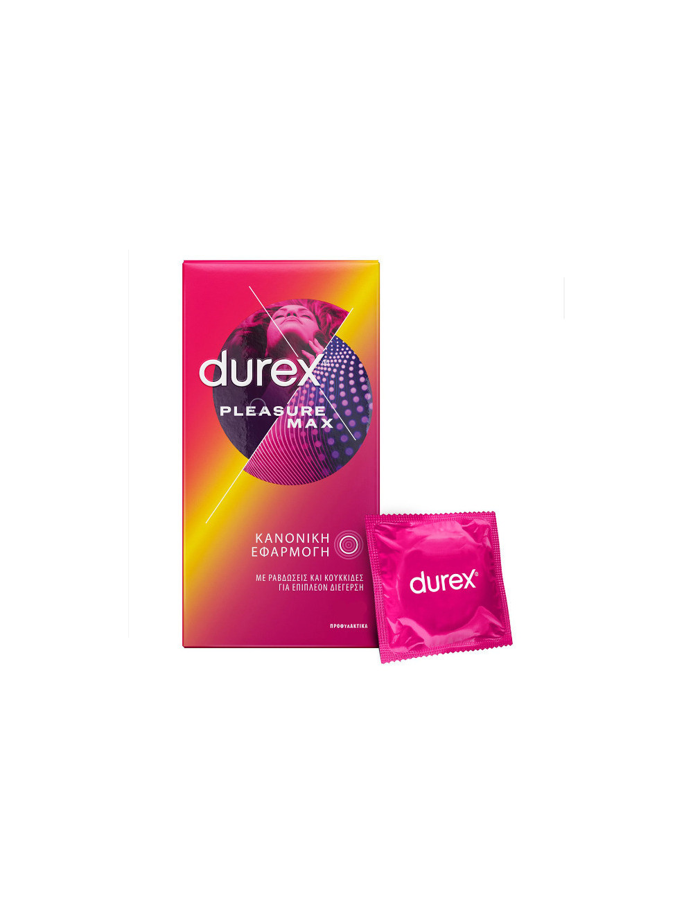 Τα προφυλακτικά Durex Pleasure Max με ραβδώσεις και κουκκίδες έχουν σχεδιαστεί λαμβάνοντας υπόψη τη γυναίκα! Οι στρατηγικά τοποθετημένες ραβδώσεις και κουκκίδες κοντά στη βάση του προφυλακτικού αυξάνουν τη διέγερση, βελτιώνοντας την εμπειρία.